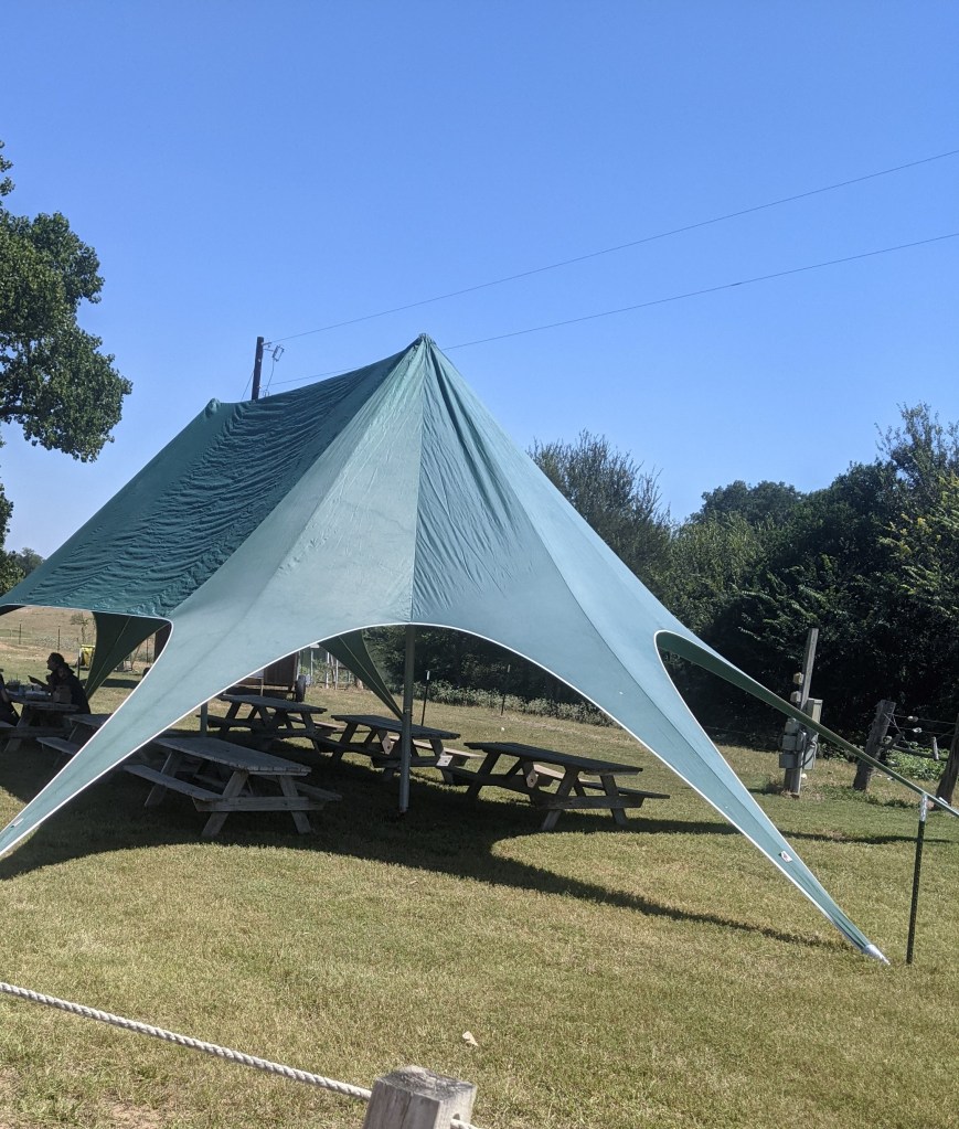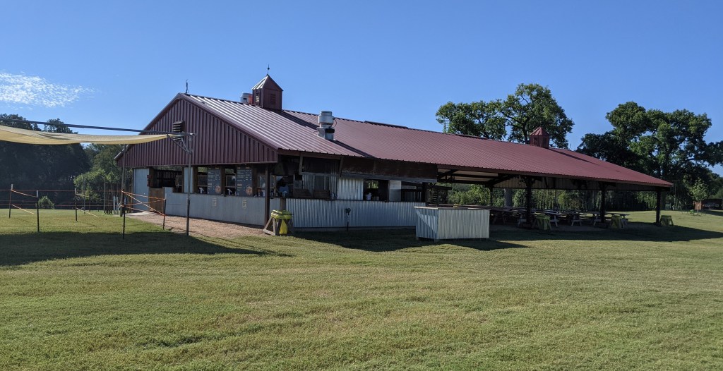 Fall is officially here and we are making the most of it! My family has visited our first Pumpkin Patch/Fall Festival of the year and it was a great start! We visited Barton Hill Farms this weekend and we got to ride a hayride, bounce on a large bounce pad, ride a bee train, and that was just the first part of our day. Barton Hill Farms is in Bastrop, TX, right next to the Colorado River. This is the first time we have visited a Pumpkin Patch where it was one entry fee to participate in all of the activities (well almost all of them) and I have to say I really liked it that way. The Fall Festival is open Saturdays and Sundays (and Columbus Day) from September 25th-November 7th and you must reserve tickets online at https://bartonhillfarms.com/austin-pumpkin-patch/. We went on opening day and reserved the first time slot at 10 a.m. and I am glad we started off early because it got hot and busy quickly. However, there were plenty of shaded spots to sit and relax to get out of the sun as well as many places to purchase cold drinks such as frozen lemonade, sweet tea, and water.
