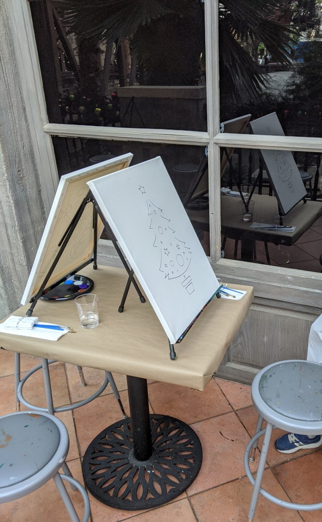 When it comes to the hotel activities I definitely recommend doing your research in advance so you can decide before you go which activities you think would be the best for your family. Just like the food at the hotel the prices for the activities are on the higher side so if you try and do them all you will end up spending a lot of money and depending on the ages of your children they may not all be worth it. In my opinion most of the activities that you purchase tickets for are geared for children 4 and up (some like the Escape Rooms are even better for older children). Not to say that your little ones would not enjoy some of them, but just something to consider when purchasing tickets. When we went last year we purchased tickets for the hotel scavenger hunt, the Art Studio painting, and the I Love Christmas Movies walk through (it does not look like they are offering the I Love Christmas Movies attraction this year). For our family the scavenger hunt and painting at the art studio were both great activities for our eight year old. Our entire family got to participate in the scavenger hunt which is a self lead hunt that takes you around the entire hotel to find clues. Our two year old had no idea what was going on, but he still enjoyed looking at all of the decorations while we ran around the hotel. Then my eight year old and I had fun painting our canvases at the Art Studio. We each picked a different design and had a nice time painting and talking.