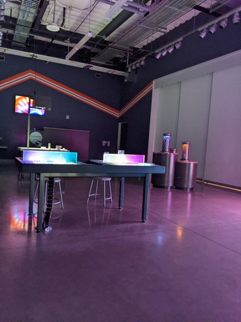 After seeing everything upstairs we decided to go and visit the Light Lab on our way out. The light lab is a great space that is darker than the rest of the museum and full of light peg walls, light tables, and plenty of different colors to enjoy. At this point my little one was getting pretty tired, but he did enjoy sitting next to the light peg wall and putting in some pegs. This is one of his favorite activities at another place we visit so I was excited they have it on an even larger scale at the Thinkery. We did not make it to the other exhibits at the museum which include Innovators’ Workshop, Train Town, Spark Shop and the Earth, Wind, Inspire section. Many of these exhibits seemed to be geared for older children so while we did not visit them during this trip we may take my eight year old back sometime to see what he thinks. I always like leaving somewhere with more to explore because it gives me an excuse to come back!