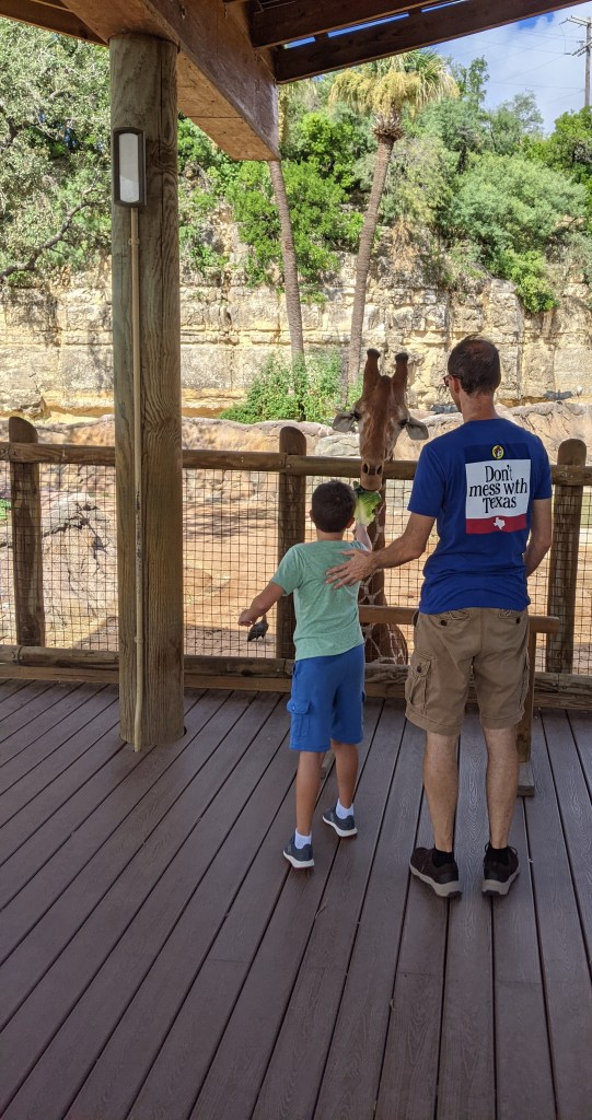 One of the best things about zoos is that you can go at your own pace so even on the busier days it does not feel as crowded because you are not waiting in lines or having to rush around. San Antonio Zoo also has so much to look at like indoor reptile areas, elephants, hippos, and much more. One of our favorite animals is the giraffe and you can actually feed them for $5. My 8 year old loved that and it was fun for mom and dad too because we got to see the giraffe so close. They only do the feeding at certain times and you can check out their site for more details: https://sazoo.org/behind-the-scenes-experiences/giraffe-feeding/ . This area was probably our favorite because it had a really windy path to walk on and an overlook platform where you can see the animals and explore.
