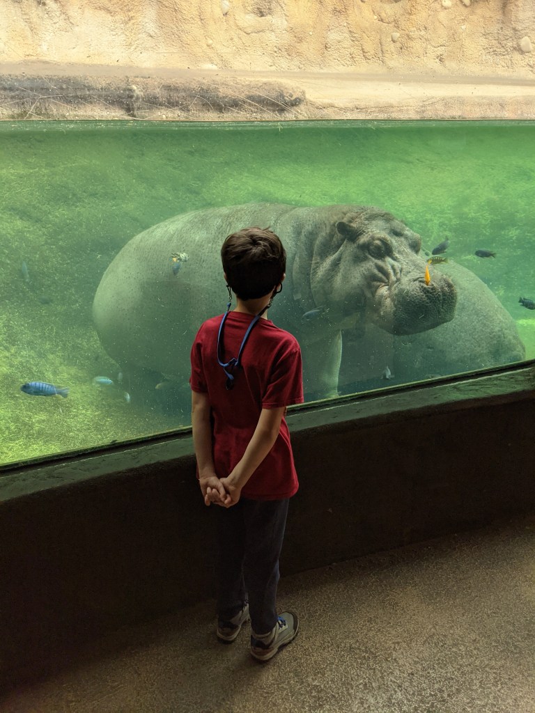 After we fed the giraffe we went on to explore the rest of the zoo. They have a nice variety of animals and both indoor and outdoor exhibits which are especially nice on those hot Texas days. Our two year old really likes the reptile and aquarium exhibits because he likes cages and windows that are at his level. He also thought the hippopotamus was really neat and loved seeing some of the small waterfalls they had in that area. My eight year old also really likes the reptile exhibit and he gets a big kick out of the fact the snakes freak me out! It usually takes us about two hours to explore the entire zoo, however it can last much longer if you decide to ride any of the rides or take part in any of the animal experiences.
