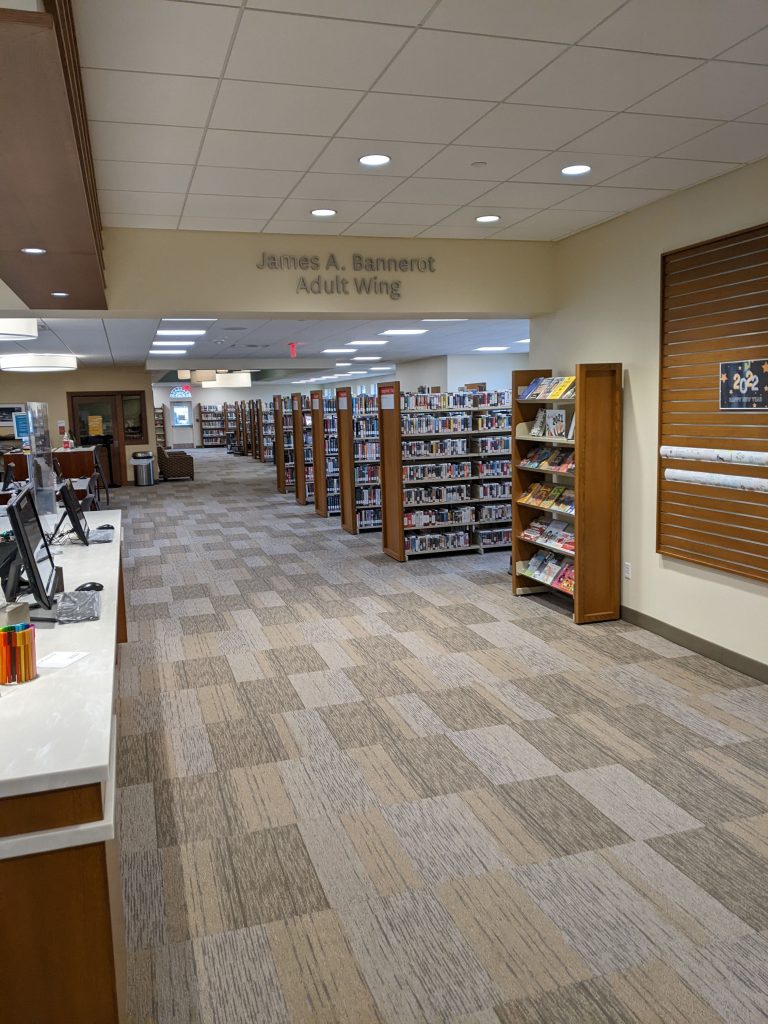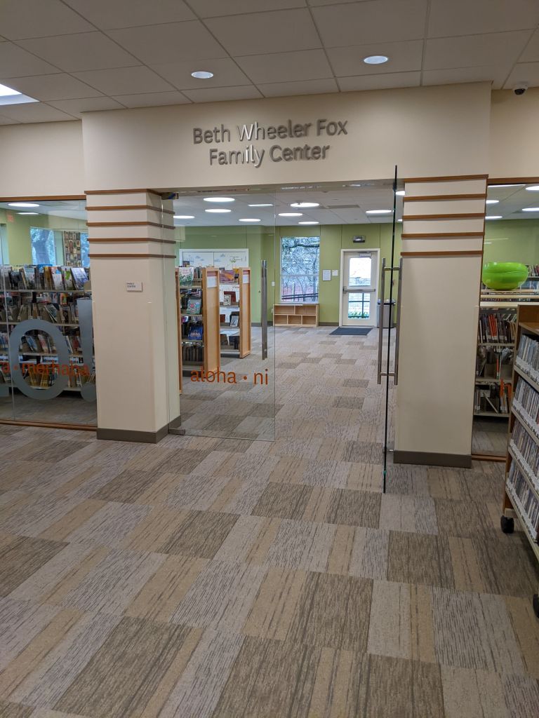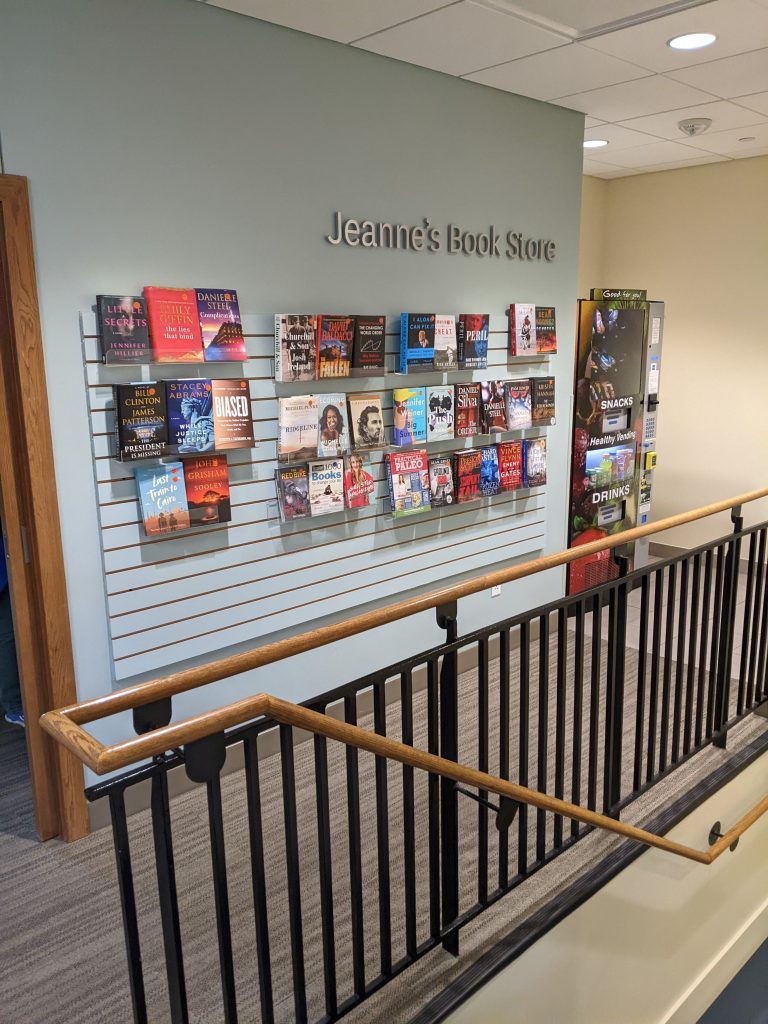 When coming back inside we did a quick overview of the rest of the library (as you can imagine my two year old did not care as much about checking out the non kid areas of the library so we had limited time!). They have a nice selection of books for older kids as well as grownups and all of the sections are laid out in such a way that they are easy to browse. There are computers setup as well as plenty of seating for patrons to use while enjoying their books. We also took the elevator (my son loves elevators!) to the second floor where there is additional seating and a cute bookstore called Jeanne’s Book Store. You can browse the store and if you see something you want to buy you just bring it downstairs to pay at the front desk.