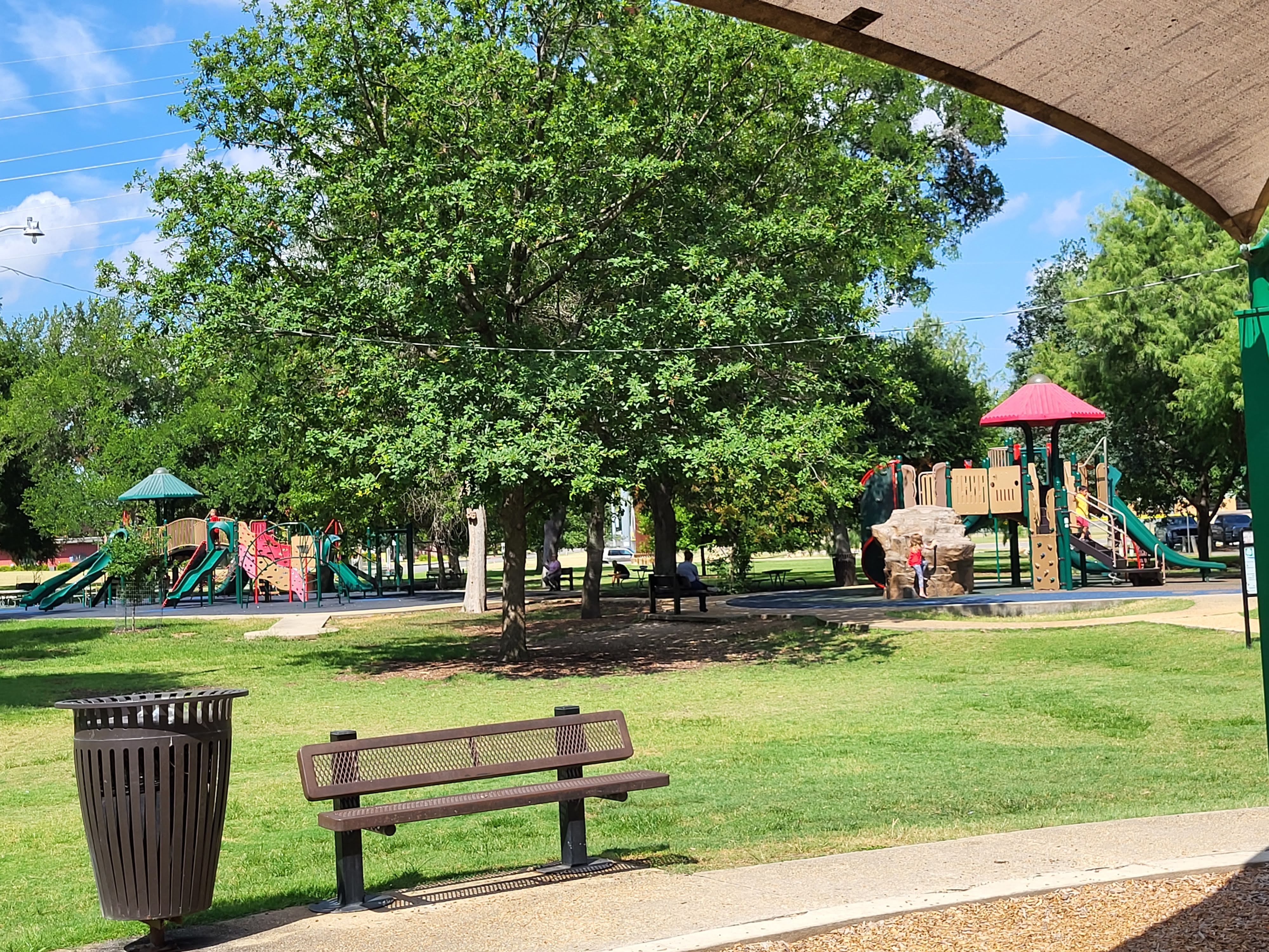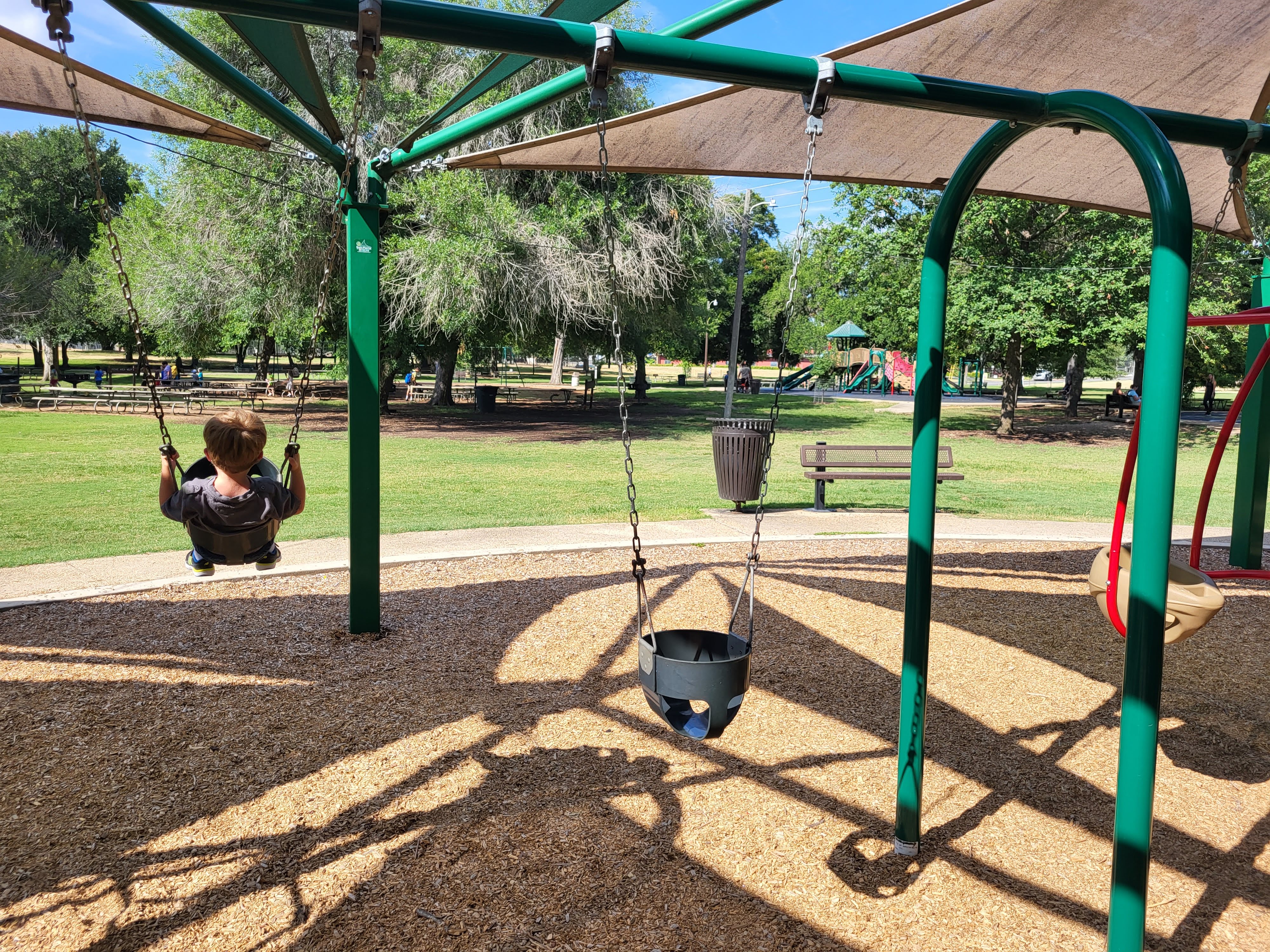 After the train ride we went over to the playgrounds. There are multiple different play structures and swings. They even had this neat walkway with musical instruments for the kids to play with and make music! Swings are my 3 year olds favorite activity right now and there were these neat swings where a young child could ride on the back in a baby swing seat and an older child (or adult for that matter) could ride on the front swing and they are both swinging together. This was my first time seeing something like that and I thought it was such a great idea! The only downside about the playground setup is all of the play structures are pretty spread out. This could be tough if you are visiting with multiple children and they all want to try different play structures. It would be hard to keep an eye on everyone at once. We managed this by visiting one play structure at a time so we could see them all and stick together. Also, one of the most important things for families with little ones is there are restrooms right in the middle of the park so you do not have to travel too far. We only scratched the surface of things to do at Landa Park and we already have a list of what we want to do next time we visit! If you want to see what other activities they offer there you can find those details here: https://www.nbtexas.org/3375/Landa-Park .
