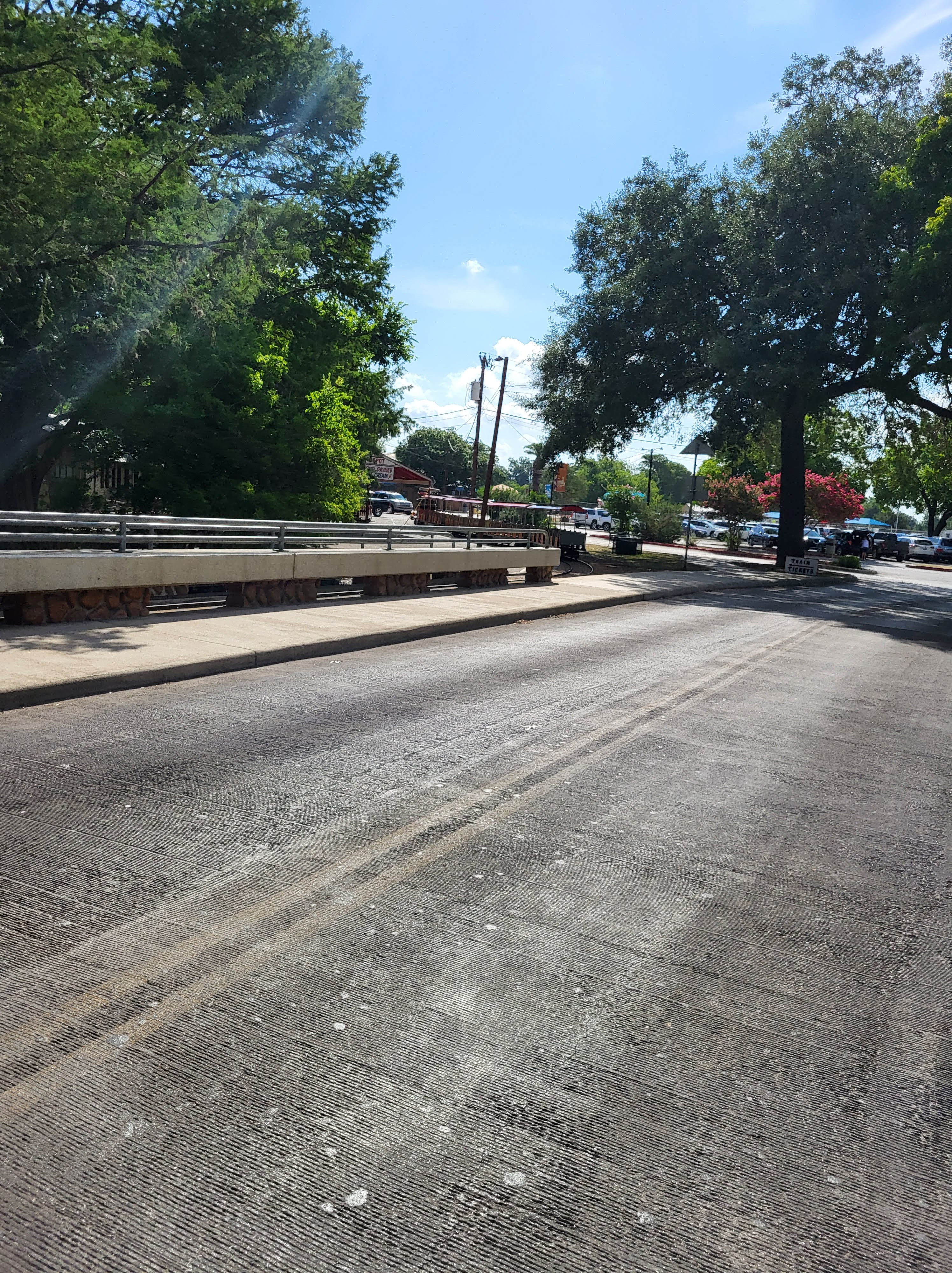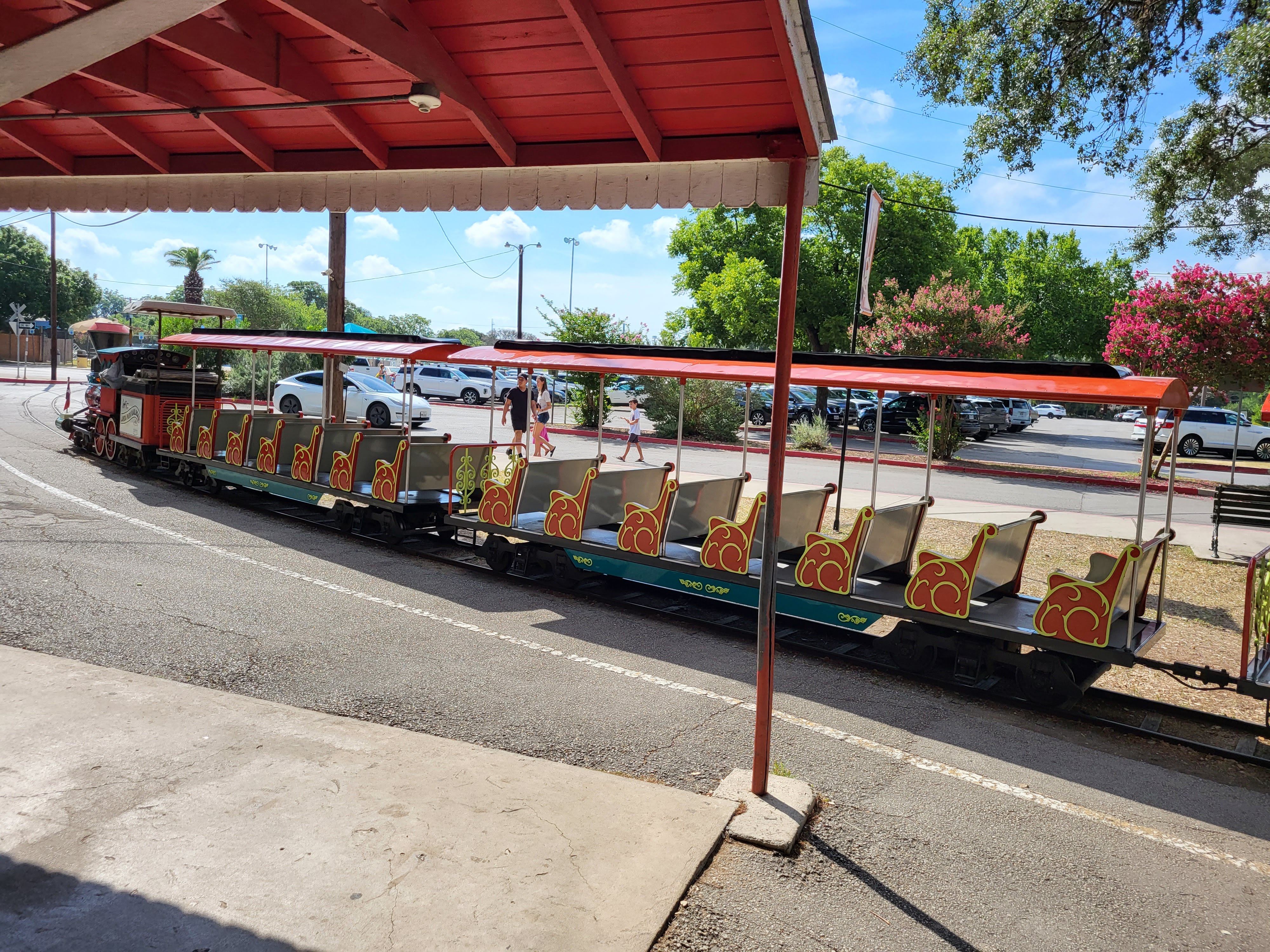 We decided to start our day at Landa Park. We wanted to experience the park before the heat of the day took over. Landa Park is huge and we only explored a fraction of it. Since it was a weekday morning we had no trouble finding a parking spot right up close. Parking was free and there were spaces all around the park. If you go on a weekend I am sure it will be busier so I always recommend going early if you want to easily find a parking spot. We started our morning with a train ride on the Landa Park Mini Train. The tickets were $5 per person (children under 1 are free) and it was approximately a 15 minute ride. The schedule for the train rides vary depending on the time of year and you can find all of the schedule details here: https://www.nbtexas.org/3377/Landa-Park-Attractions . Something that is special about this train ride is that it does not just go in a little circle, it actually takes you around the park which was a nice tour for us. We got to see the lake, the pool, the miniature golf course and the playgrounds. It was a scenic ride and all three of us really enjoyed it.