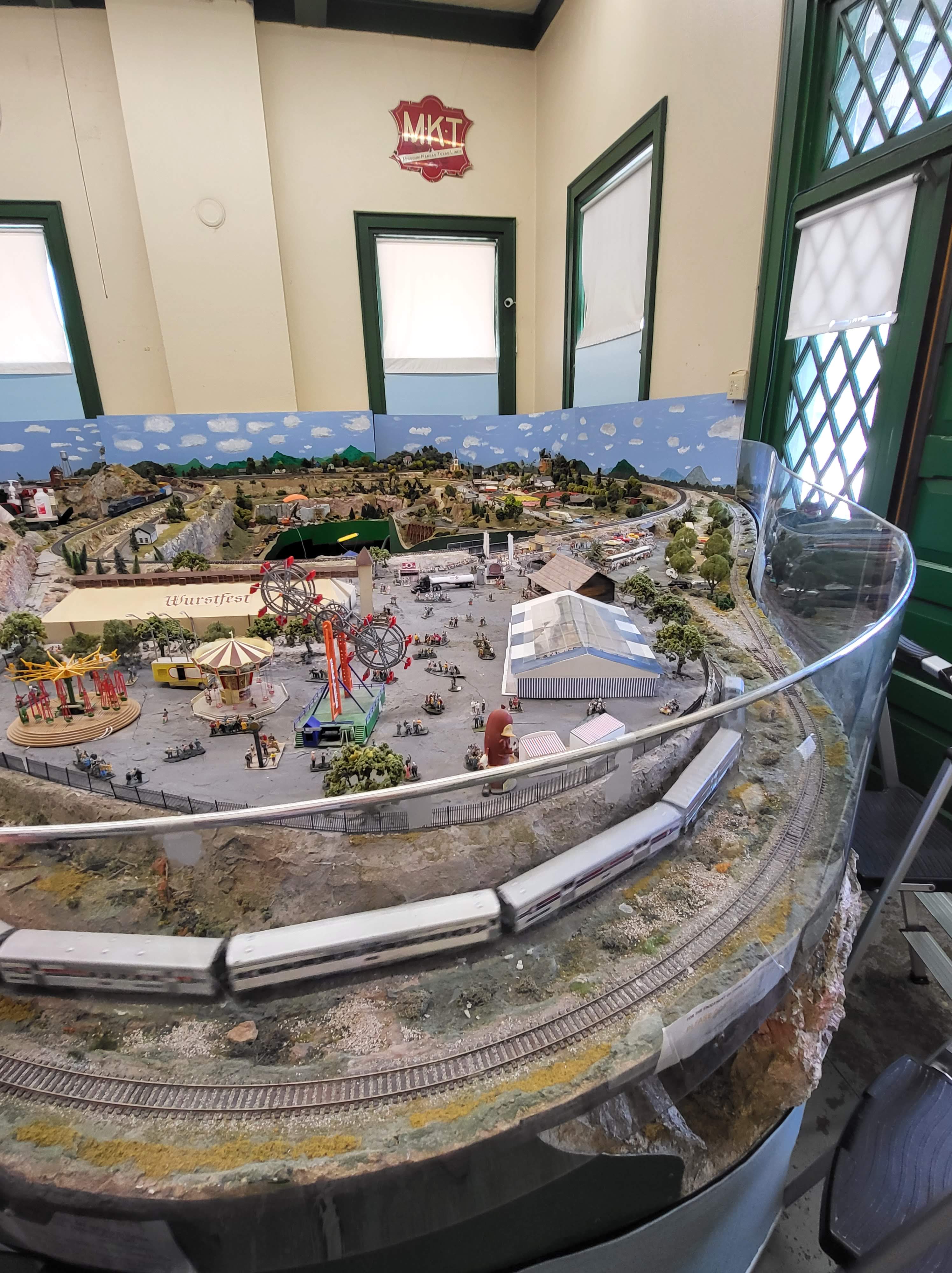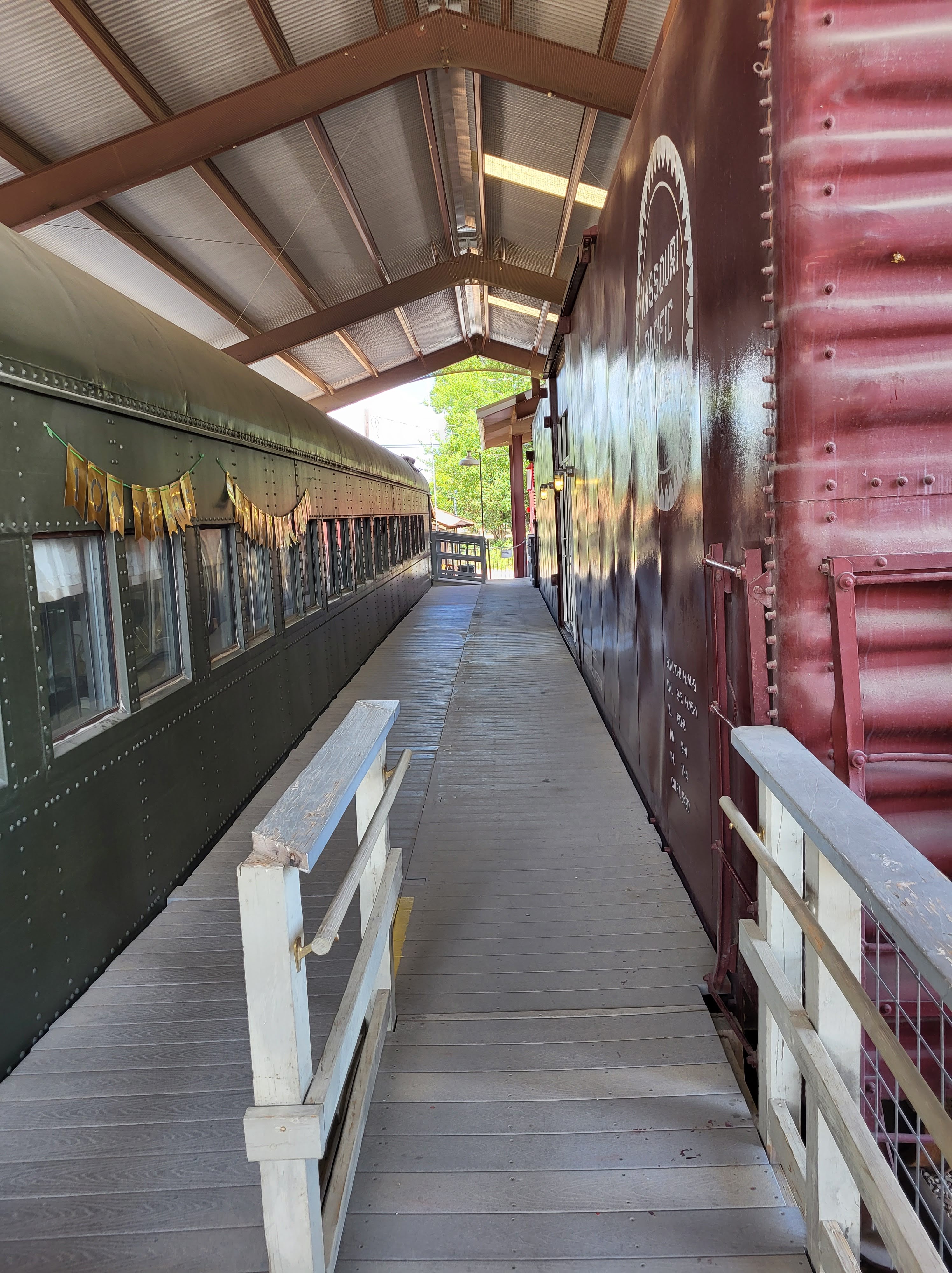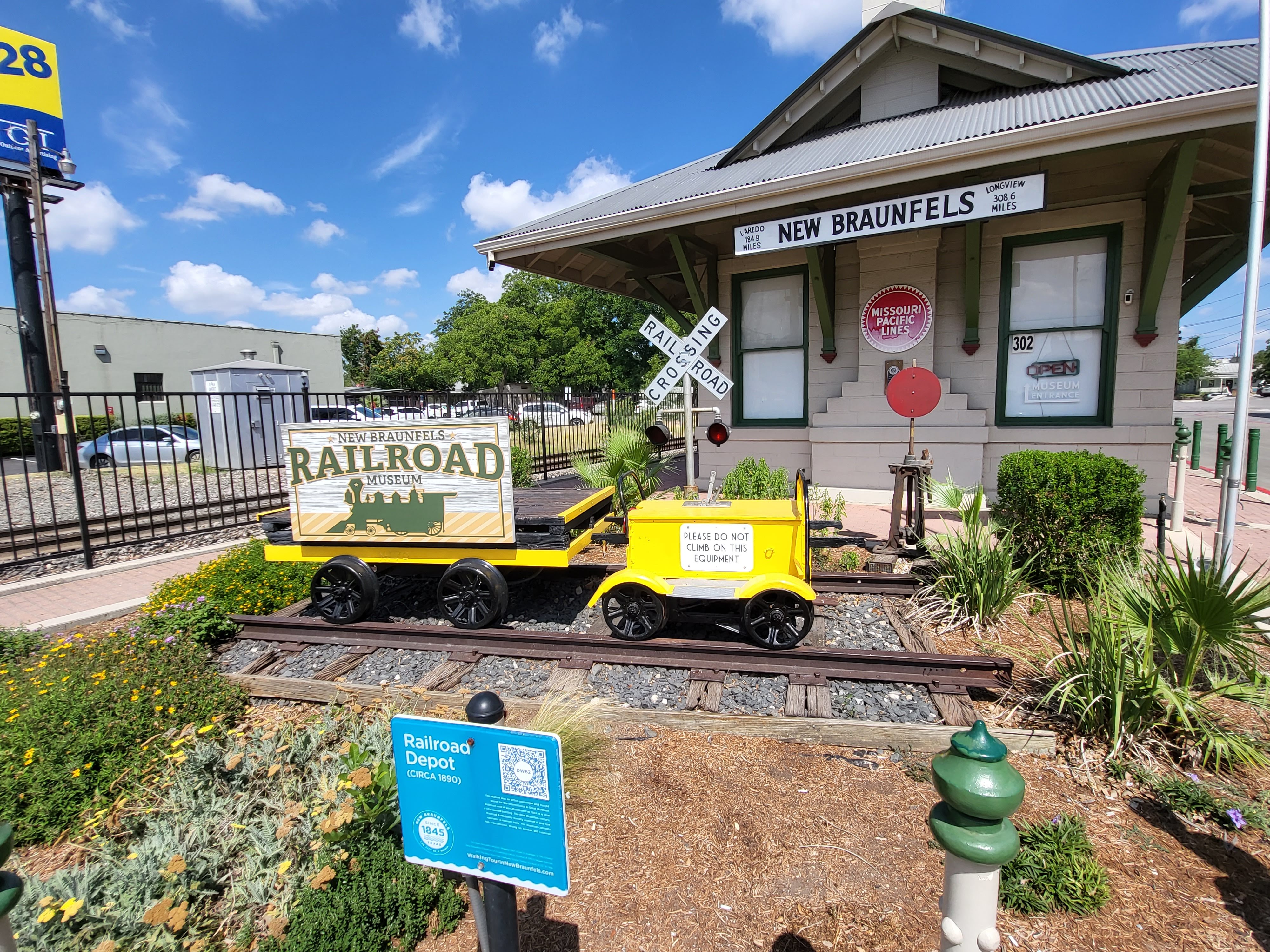 After about 2 hours at Landa Park it was getting pretty hot so we decided to head out and go over to the New Braunfels Railroad Museum. When we are visiting new towns in any state we always check if there is a Railroad Museum because they are such gems in these small towns. My kids love looking at the model trains and are just fascinated by the setups. We got lucky because we went right when the museum opened and had the whole place to ourselves. The gentleman working there turned on all of the trains for us and gave us a lot of good information. It is not a large museum, but we still spent at least 30 minutes just watching the trains go around and examining all of the little buildings, scenes, and tunnels. It was also indoors which was perfect for the hot day! You can tell they plan for little kids to visit because they had small step ladders spread around the trains so kids can climb up to get a better view. We also found out that on the first and third Saturday every month they have a Kids Run the Train event where they have model trains set up that kids run. After we admired the indoor model trains we went outside to go see the full size train car museum they had in the back. There were multiple train cars that you can go inside and explore a dining car or the train’s engine room. This part was both indoors and outdoors because you walk in between each train car, and they also had restrooms available. We even found out they have a train show coming up in October 2022 (http://newbraunfelsrailroadmuseum.org/nbrr/train-shows/) so we have already marked that on our calendar.